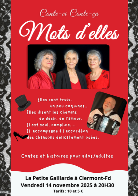 VENDREDI 14 NOVEMBRE 2025 A 20H30 « MOTS D’ELLES » Publié le par PetiteGaillarde Posté dans Au programme ..., Théâtre Conte-ci Conte-ça présente « Mots d’elles »
